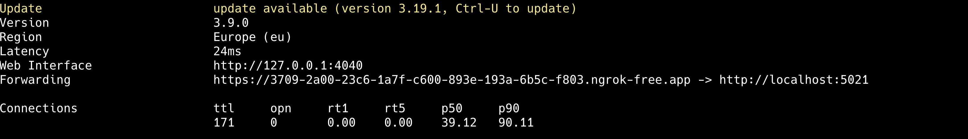 ngrok http <YOUR_PORT>This should give you an endpoint like this: